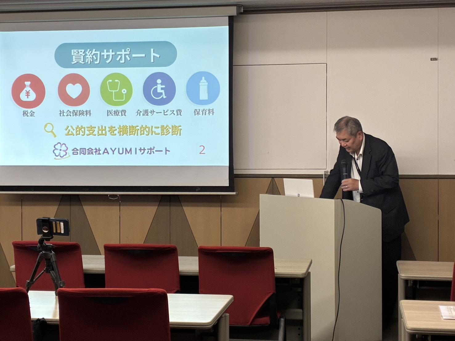 2026.01.15 研修事業 介護と仕事の両立支援セミナー 大阪市阿倍野区の市民学習センターにて「介護と仕事の両立支援セミナー」を開催しました。 介護離職防止の為の、両立支援制度の解説や、税金、社会保険料、後見制度などの使い方や、効果を分かりやすくお話させて頂きました。 社会保険労務士・行政書士・介護福祉士、様々な立場からの離職防止についてお話をさせて頂きました。 PDFを開く 一覧に戻る
